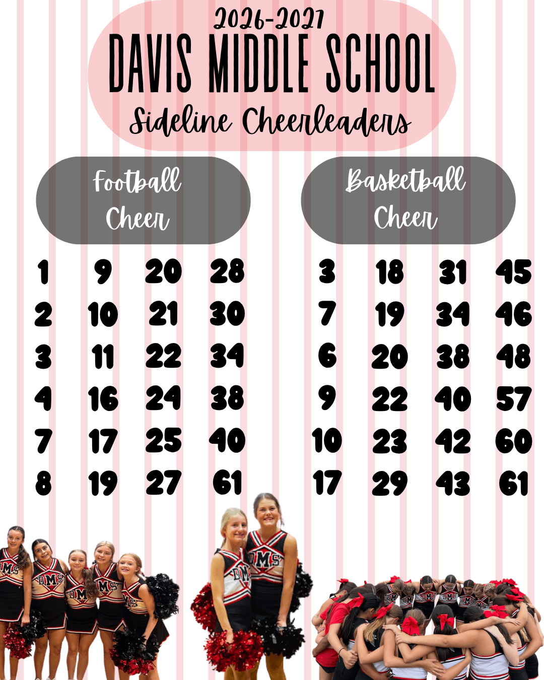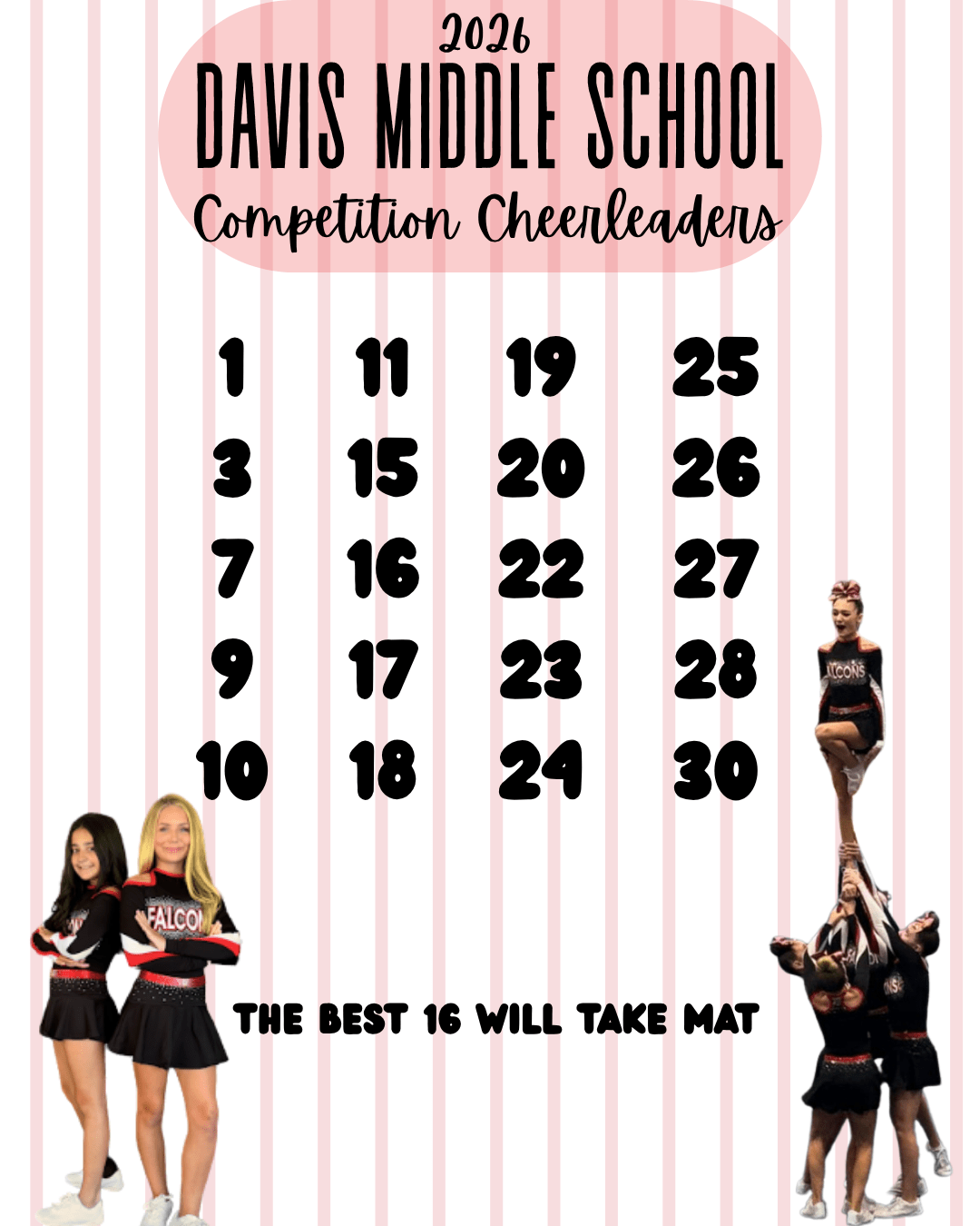We want to thank all of the girls who tried out for the C.W. Davis Middle School Cheer Program for the 2026-2027 seasons.